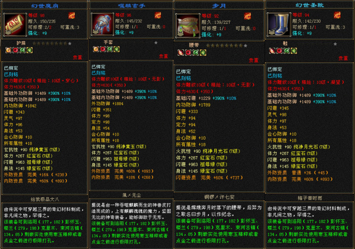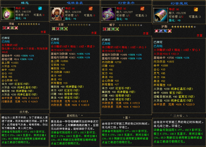 防具清一色全属性大八星,体力点都是94+!
