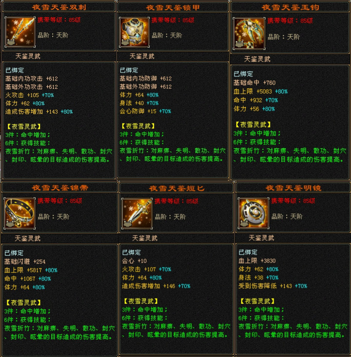 灵武是全套夜雪,不少都是洗到双80%!每件灵武都是极品。